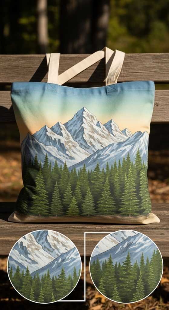 Painting a landscape on a tote bag brings the serenity of nature into everyday life. Start by selecting a calming theme such as mountains, forests, beaches, or sunsets. This type of artwork works best with larger canvas tote bags because landscapes require space for depth and layering. Gather fabric paints in natural shades such as greens, browns, blues, and oranges depending on the scenery you want to create.