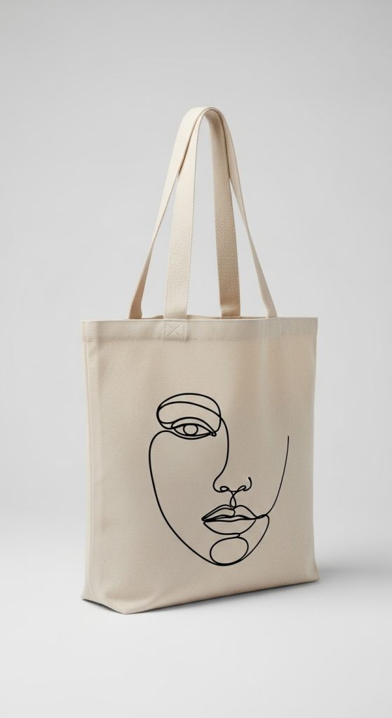 Once the sketch is ready, outline it using a thin brush or fabric marker. Keep your strokes steady and commit to long flowing lines without lifting your brush frequently. If the design includes overlapping lines, make sure they connect smoothly to maintain the minimalistic style. The simplicity of the artwork makes it suitable for beginners because it does not require shading or complex color combinations. Though minimalistic, the result looks fashionable and modern, making it perfect for students, professionals, or anyone who likes clean and stylish accessories.