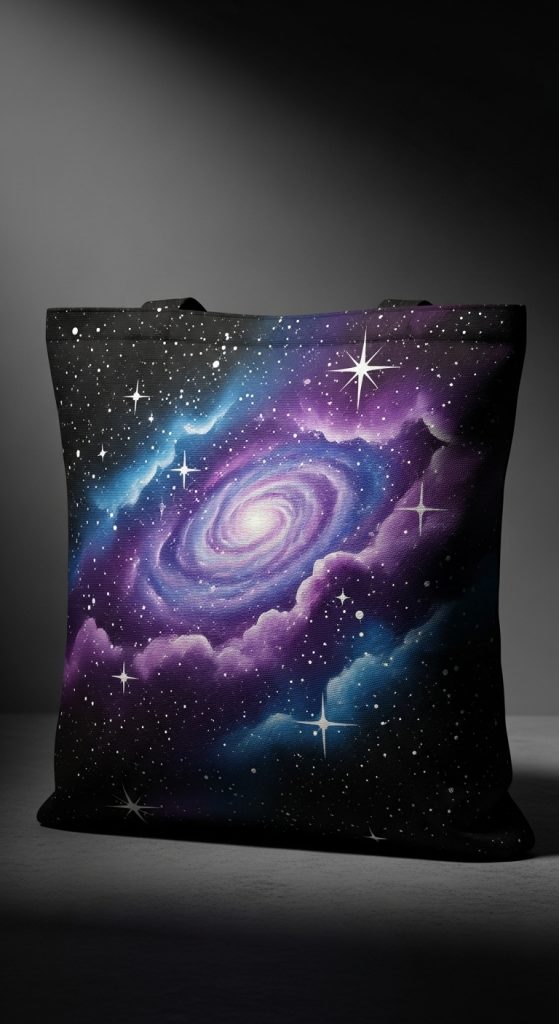 The final galaxy tote bag becomes a unique fashion piece that stands out in both daylight and evening lighting.