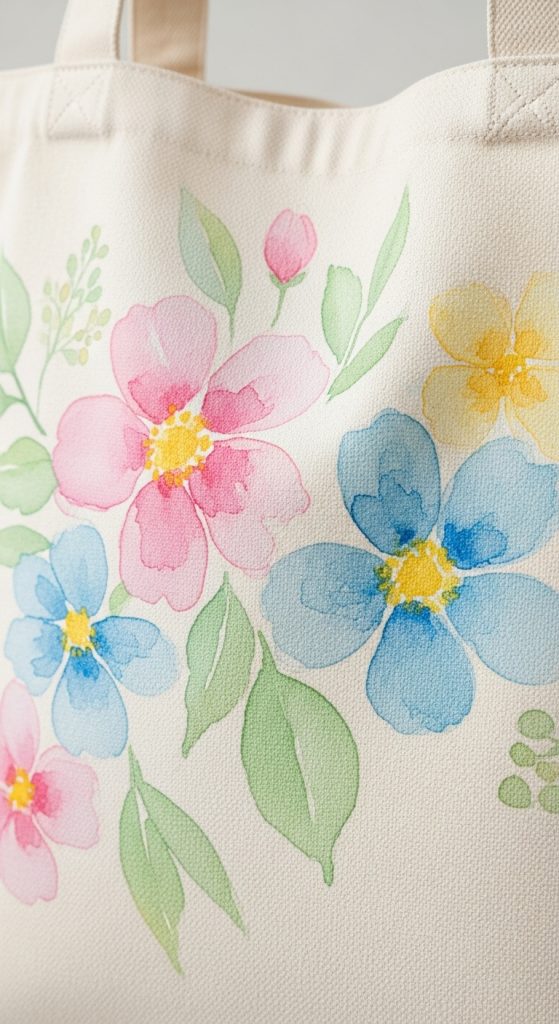 One of the most timeless and visually appealing themes for tote bag painting is a floral watercolor design. This style blends soft colors and gentle brushstrokes to mimic the dreamy appearance of watercolor art even when working with fabric paint. To begin, wash and iron your tote bag to remove any dust or wrinkles that might interfere with painting. Slip a cardboard sheet inside the bag to keep the paint from seeping through the fabric. Choose fabric paints in light shades such as pastel pinks, greens, blues, and yellows, or mix them with fabric medium to create a thinner watercolor like consistency.