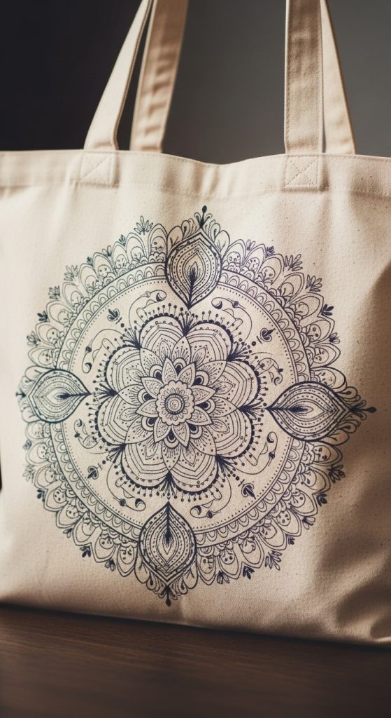 This project requires patience, but the results are beautiful and meditative. Mandala tote bags work well for yoga enthusiasts, artists, or anyone who appreciates detailed art. They also sell well at craft fairs due to their cultural and decorative appeal.