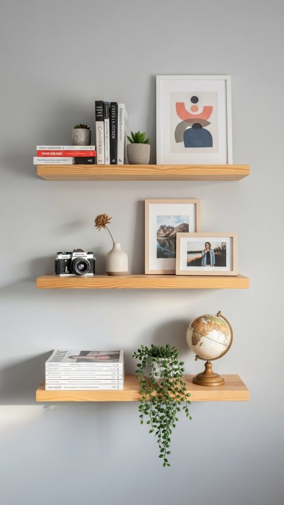 Before installing shelves, decide what you want to place on them and choose the right size. Make sure the wall can support the weight. Use proper tools and screws for installation. Keep the arrangement simple to avoid a crowded look.