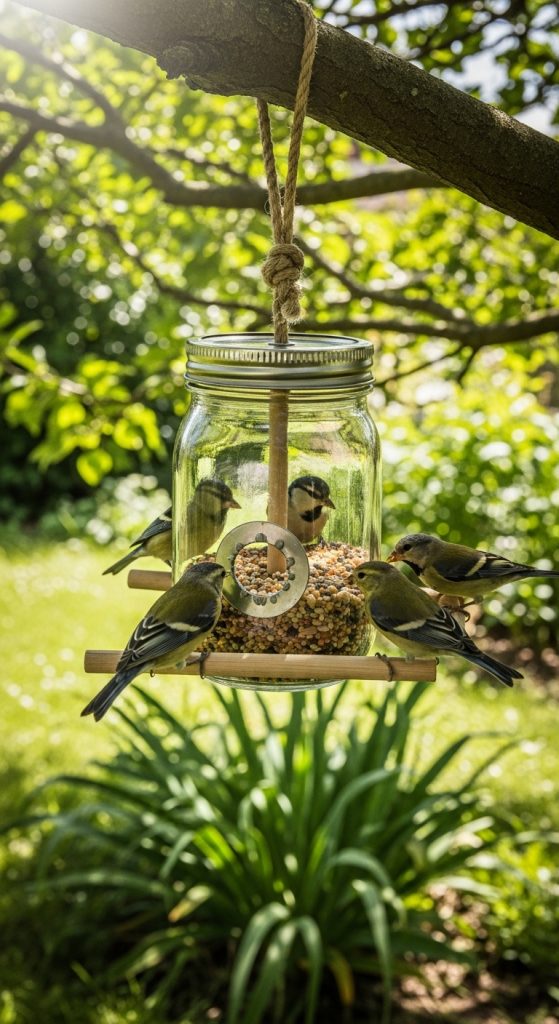 This feeder works well for smaller birds such as finches and sparrows. The transparent jar allows you to monitor seed levels easily. Mason jar feeders are simple, effective, and a great introduction to DIY bird feeding projects. Ensure you clean the jar regularly to prevent mold and keep birds healthy.