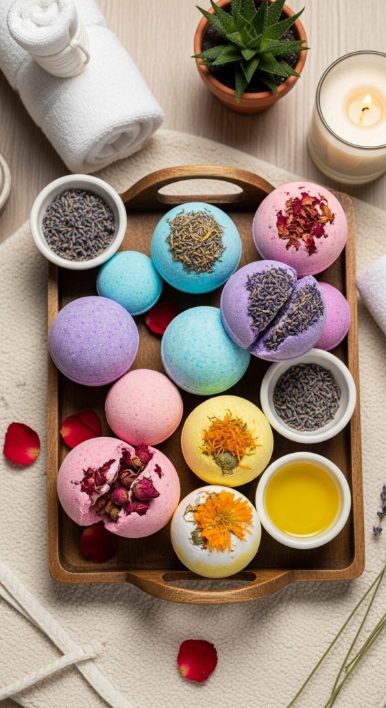 Bath bombs are luxurious yet easy-to-make gifts that bring spa-like relaxation to anyoneโ€™s home. You will need baking soda, citric acid, cornstarch, Epsom salt, essential oils, and water or witch hazel. Start by mixing the dry ingredients, then slowly add the wet ones while stirring until the mixture holds together when squeezed. Mold the mixture into shapes using round molds or cookie cutters and let them dry overnight. You can personalize each batch with different scents and colors, such as lavender for relaxation or citrus for energy. Package the bath bombs in decorative boxes or cellophane with ribbons. They make ideal gifts for anyone who enjoys self-care and pampering. Homemade bath bombs are not only chemical-free but can also be infused with natural ingredients like dried flower petals or oatmeal for added texture and fragrance.