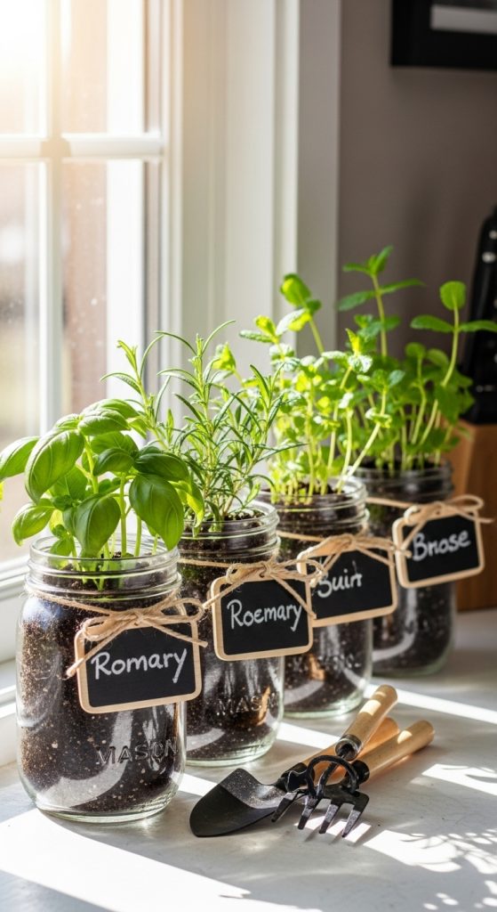 9. Mason Jar Herb Gardens