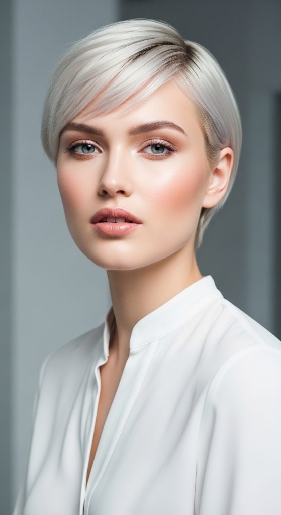 Platinum blonde is a striking and edgy color that works well with short hair, giving it a clean, sharp look. This color is best suited for those with a lighter skin tone, though it can be adapted for medium tones with the right undertones. Achieving platinum blonde requires careful preparation because the hair must be lightened significantly.