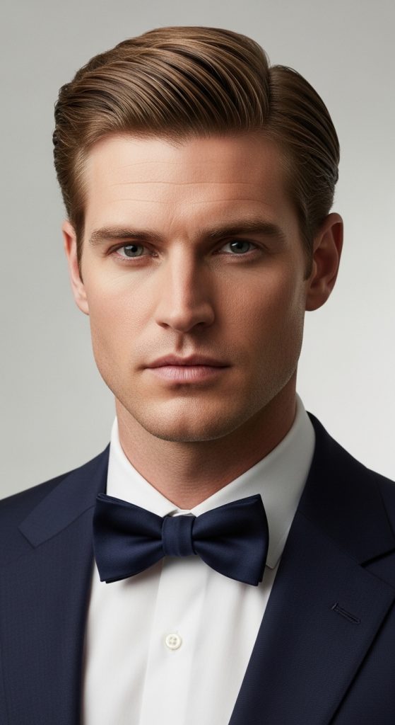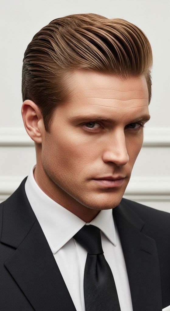 The medium slick back is a structured hairstyle that emphasizes control and smooth direction. It involves combing the hair backward to create a clean and polished appearance. This style works best with medium-length hair because it provides enough length to achieve full backward flow without stiffness. In Pinterest ideas and professional grooming inspiration, this haircut is often associated with refined and minimalist style aesthetics. It is suitable for formal settings as well as modern casual looks. The key feature is smoothness, which is achieved by maintaining even length and reducing unnecessary bulk. This style offers a balance between traditional grooming and contemporary design, making it a versatile choice for individuals seeking a controlled yet natural-looking haircut.