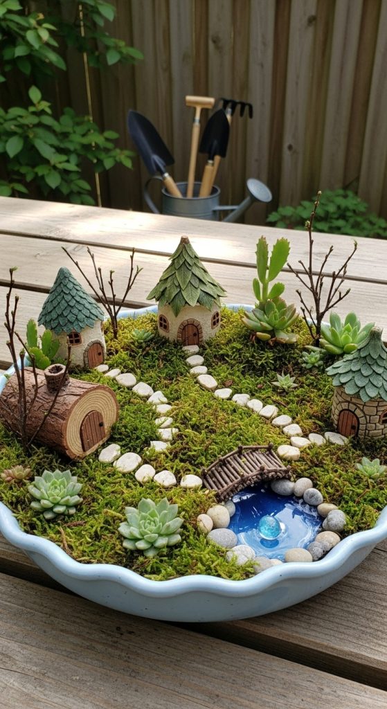 These gardens are ideal for tabletops, windows, or outdoor patios. They require moderate sunlight and minimal watering. The fairy-themed garden allows creative expression and can be customized with seasonal decor, such as small pumpkins in fall or seashells in summer. It is an engaging project for children and adults alike, combining gardening with storytelling.