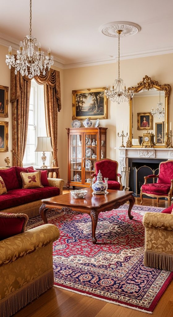Traditional interior design draws inspiration from classical European aesthetics, emphasizing elegance, symmetry, and rich detailing. This style often features ornate furniture, luxurious fabrics, and decorative moldings. Wood, marble, and fine textiles like silk and velvet are commonly used. Traditional spaces often use warm and neutral color palettes, including deep reds, greens, and golds. Furniture is typically heavy and well-crafted, with intricate carvings or polished finishes. Accessories such as chandeliers, framed artwork, and rugs complete the sophisticated look. To prepare for a traditional interior, focus on selecting timeless, quality furniture that complements the overall theme. Use symmetry in furniture placement to create a balanced and harmonious space. Layering rugs, drapes, and upholstery adds texture and richness. Incorporate classic patterns such as florals, damask, or paisley in fabrics and wallpapers. Lighting should be elegant, with chandeliers, sconces, and lamps that provide warm illumination. This style also encourages the use of antiques or heirlooms to enhance authenticity and history. Traditional interior design is suitable for those who prefer classic elegance, luxury, and a sense of grandeur. It creates a comfortable yet refined home environment with enduring appeal.