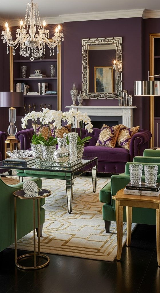 Glam interior design emphasizes luxury, elegance, and sophistication. It often incorporates bold colors, metallic accents, plush fabrics, and reflective surfaces. Furniture is stylish and often features tufted upholstery, mirrored surfaces, or metallic finishes. Rich colors like deep purple, emerald green, gold, and silver are commonly used alongside neutrals. Lighting plays a crucial role, with chandeliers, crystal lamps, and statement fixtures enhancing the luxurious ambiance. Accessories such as artwork, decorative mirrors, and opulent rugs add personality and elegance. To prepare a glam interior, focus on selecting high-quality, eye-catching furniture and dรฉcor. Layer textures with velvet cushions, silk curtains, and plush rugs. Metallic and mirrored accents should be strategically placed to reflect light and create visual impact. Incorporate statement lighting as a focal point in rooms. Glam design is ideal for those who enjoy sophistication, drama, and a touch of luxury in their homes. It transforms spaces into elegant and stylish environments that feel indulgent and inviting.