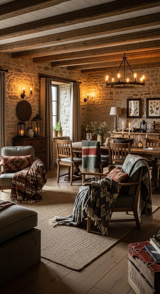 Rustic interior design emphasizes natural beauty, warmth, and a connection with the outdoors. It often incorporates raw materials such as wood, stone, leather, and metal. Furniture is sturdy, handcrafted, and functional, with a focus on comfort. The color palette includes earthy tones like browns, beiges, greens, and deep reds. Textures play an important role, with rough wood, woven fabrics, and exposed stone walls adding character and charm. Rustic design celebrates imperfection, highlighting natural materials and handmade dรฉcor. To prepare for a rustic makeover, start by selecting furniture and materials that reflect natural beauty and durability. Incorporate reclaimed wood, vintage pieces, and handmade accessories for authenticity. Use earthy colors as a base, complemented by warm accent tones. Layer textures with rugs, cushions, and throws to create cozy spaces. Lighting should be soft and warm, using lanterns, pendant lights, or wrought iron fixtures. Rustic design suits individuals who appreciate nature, craftsmanship, and a cozy, inviting home environment. It creates spaces that feel grounded, timeless, and welcoming, offering a sense of calm and comfort.
