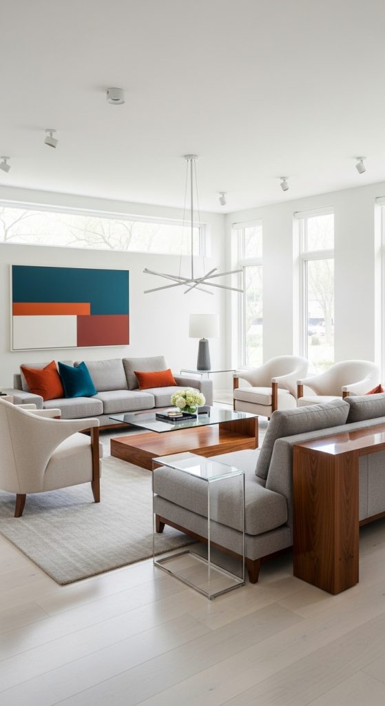 Mid-century modern interior design emerged in the mid-20th century and emphasizes simplicity, clean lines, and functional furniture. It combines organic and geometric shapes, often using natural materials like wood, leather, and metal. The style features bold colors such as mustard, teal, and olive green, alongside neutral backgrounds. Furniture in mid-century modern interiors is sleek, functional, and often low-profile, with iconic pieces such as the Eames lounge chair or minimalist wooden tables. Open floor plans, large windows, and a connection to the outdoors are key features. To implement this style, start by selecting furniture with clean lines and a retro-modern vibe. Use a combination of warm wood tones and bold accent colors to create visual interest. Minimal accessories and clutter-free surfaces maintain the styleโs emphasis on simplicity. Lighting plays a vital role, with floor lamps, pendant lights, and statement fixtures highlighting the dรฉcor. Artworks with abstract or geometric designs complement the mid-century modern aesthetic. This style is ideal for individuals who appreciate vintage charm, timeless design, and functional yet stylish living spaces. It balances warmth, simplicity, and elegance for a modern lifestyle.