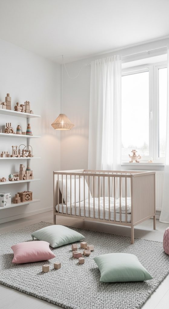 A Scandinavian-inspired toddler room focuses on simplicity, functionality, and calmness. Its neutral color palette and clean lines make it ideal for parents who appreciate modern design. Start with a base of white or light gray walls, adding warmth with natural wood furniture and soft textiles.