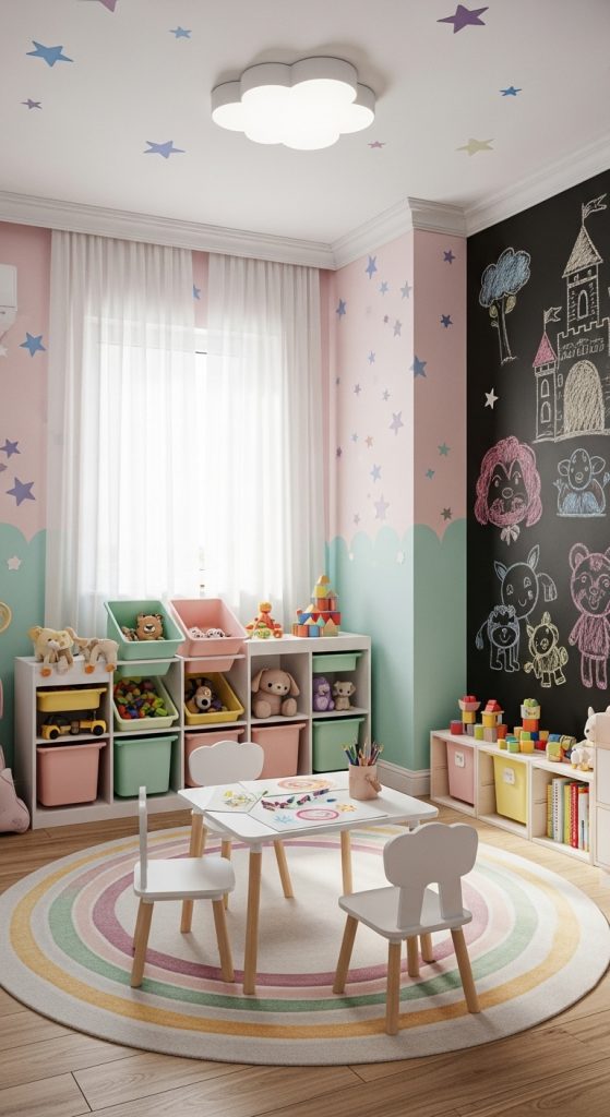 A toddler’s room that doubles as a playroom offers both function and fun. The whimsical theme focuses on interactive elements like wall art, toys, and furniture that encourage creativity. Start by selecting a cheerful base color such as sky blue, soft yellow, or blush pink.