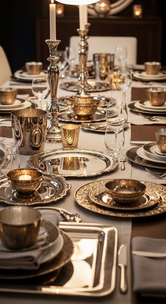 Michael Aramโs work often combines various metallic finishes, such as polished silver, antique bronze, or gold accents. Layering these textures in your dining decor creates depth and sophistication. To prepare, start with a base metallic piece, like a centerpiece tray, and layer complementary items, such as candleholders, serving bowls, or decorative ornaments, around it. Ensure that each metallic element contrasts subtly with the others; for instance, pair a matte bronze piece with a polished silver accessory to avoid visual monotony. When layering, maintain balance and symmetry so that the table appears curated rather than cluttered. Adding soft textiles, like linen or cotton table runners, can provide a contrasting texture that enhances the metallic shine. Layered metallics capture light beautifully, producing a warm, inviting glow during mealtime. This technique not only elevates the aesthetic of your dining area but also reflects the meticulous attention to detail that defines Michael Aramโs handcrafted designs.