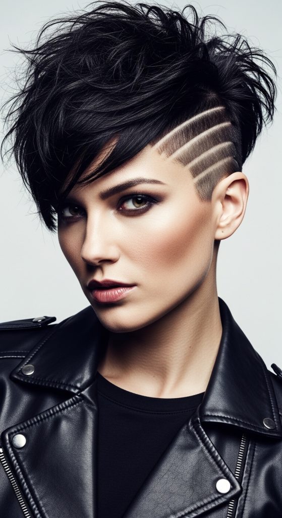 The shaved pixie cut has gained attention in modern beauty trends because it combines individuality with practicality. In many Pinterest boards, short hairstyles are featured as symbols of confidence and self-expression. The shaved pixie stands out because it allows controlled contrast between shaved sections and textured top layers. This contrast creates a strong visual effect that works well in both minimalist style and bold aesthetic directions. It also supports easy daily styling, which makes it appealing for people looking for low-maintenance hair solutions without sacrificing personality or fashion relevance.