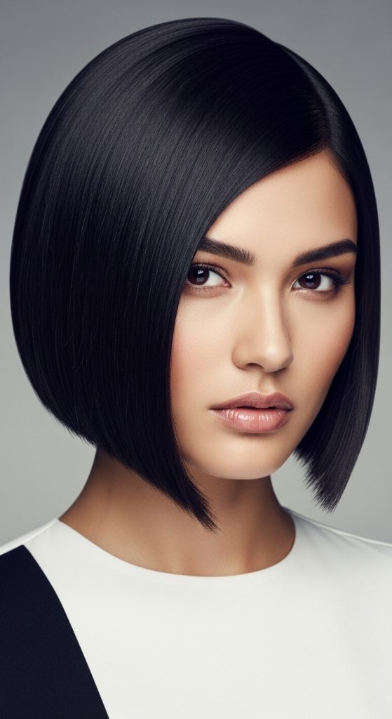 The sleek straight pixie emphasizes smoothness and clean lines. It is defined by polished surfaces and controlled structure. This style is often associated with modern design inspiration due to its refined appearance.