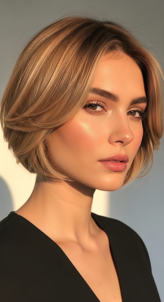 To create this look, the hair is cut with rounded layers that blend smoothly into each other. The sides are not heavily tapered but gently shortened to maintain softness. The top is shaped with slight elevation to avoid flatness while preserving a natural flow. Scissors-over-comb techniques are often used to ensure smooth transitions. After cutting, styling involves light smoothing products that enhance shine and control frizz without adding weight. The goal is to maintain a natural, airy finish that feels effortless and refined.