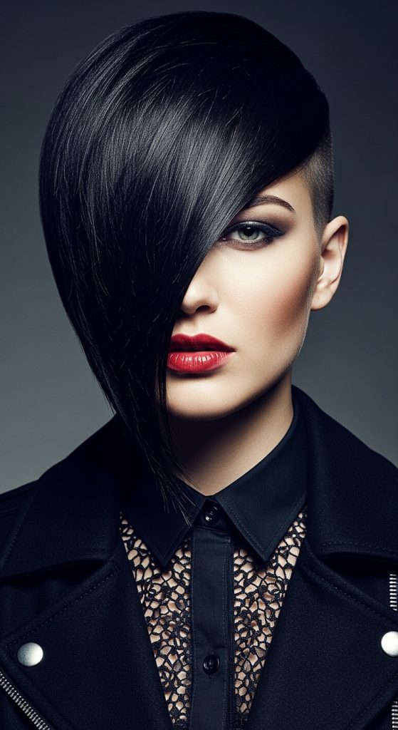 To create this hairstyle, the hair is divided into clearly defined sections before cutting. One side is selected as the longer side, while the opposite side is gradually cropped shorter. The transition between lengths is carefully blended to avoid harsh disconnect unless a sharp contrast is desired. The top section is typically styled to flow toward the longer side, reinforcing the asymmetrical effect. Precision is essential during cutting to ensure that proportions remain intentional rather than uneven. Once the structure is established, light styling products help maintain direction and shape without reducing natural movement.