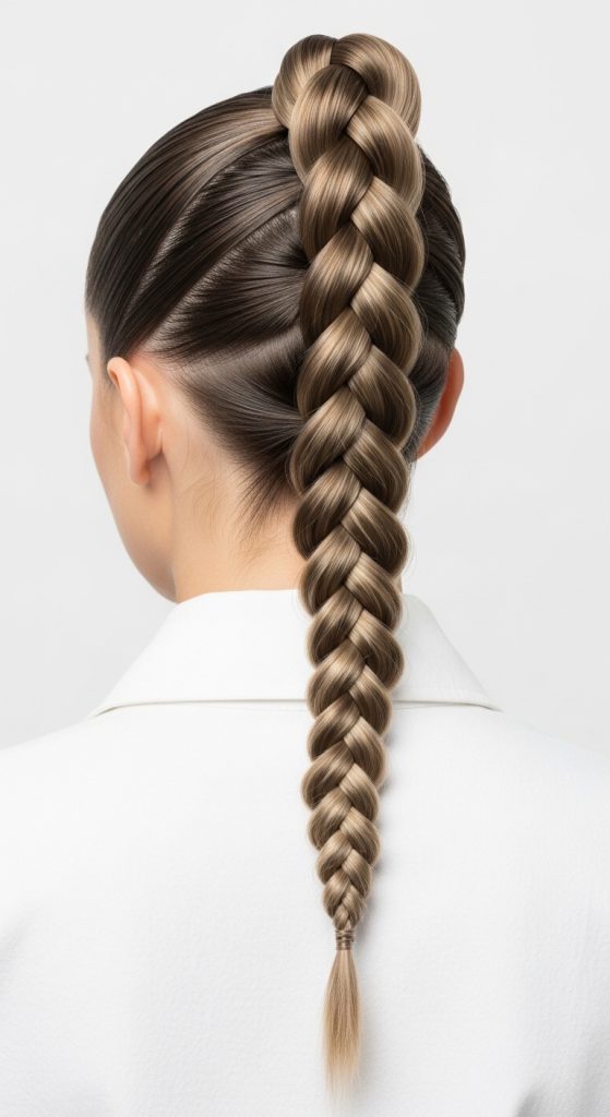This style is suitable for advanced beginners exploring creative project variations. It requires basic materials but more attention to structure. The multi-strand braid represents an elevated version of slick back ponytail braid ideas with strong visual impact.