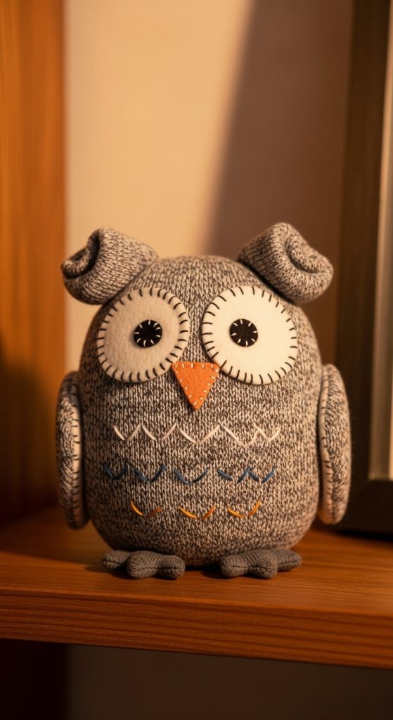 Sock owls are commonly used as shelf decor, gifts, or seasonal decorations. You can adjust colors to match interior themes. This project is simple but visually appealing, making it a great choice for both beginners and experienced crafters.