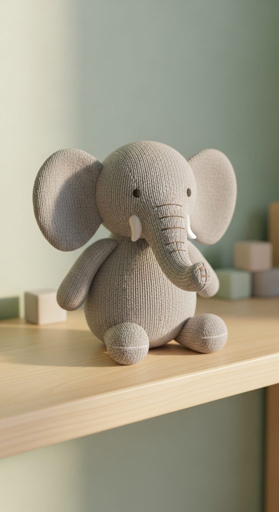 The body and head are usually made from the main sock, while the trunk is formed by extending and shaping the toe area. Ears can be cut from flat sock sections or felt and sewn onto the sides of the head. Stuff the elephant firmly so it can sit steadily.