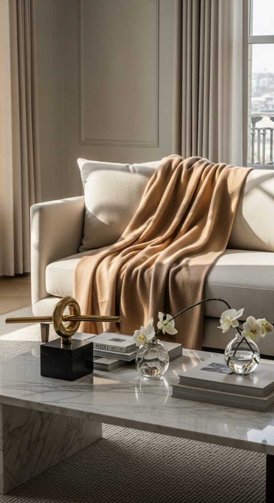 Due to its delicate fibers, cashmere requires careful maintenance. Dry cleaning or gentle hand washing is recommended to preserve softness. While more expensive than other materials, cashmere offers unmatched comfort and long-lasting quality. Draped over a sofa or folded at the end of a bed, it adds sophistication to any space while providing warmth that feels effortlessly elegant.