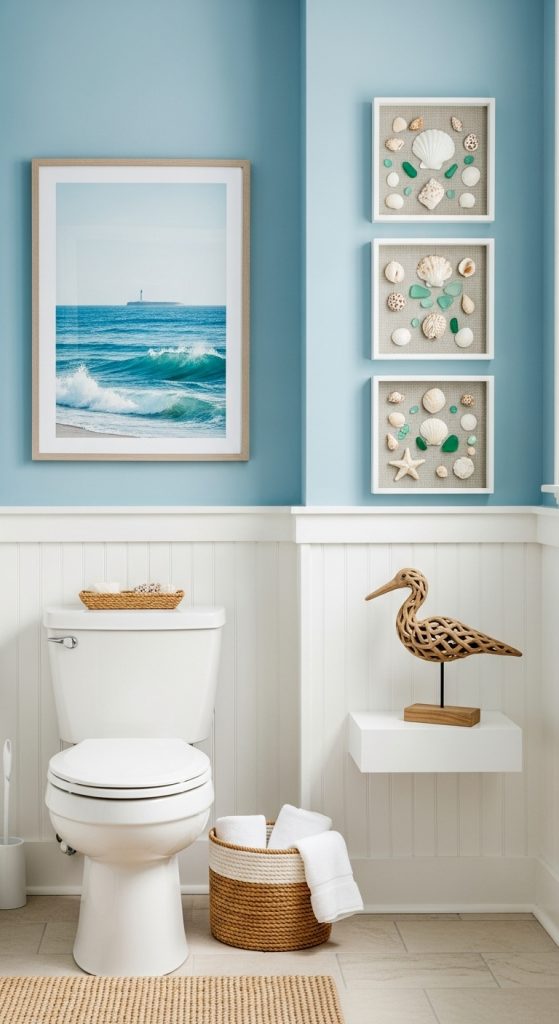 For those who enjoy adding personality to their space, creating a themed decor display above the toilet can make the bathroom feel unique and curated. Themes might include coastal, farmhouse, vintage, or spa-inspired styles.