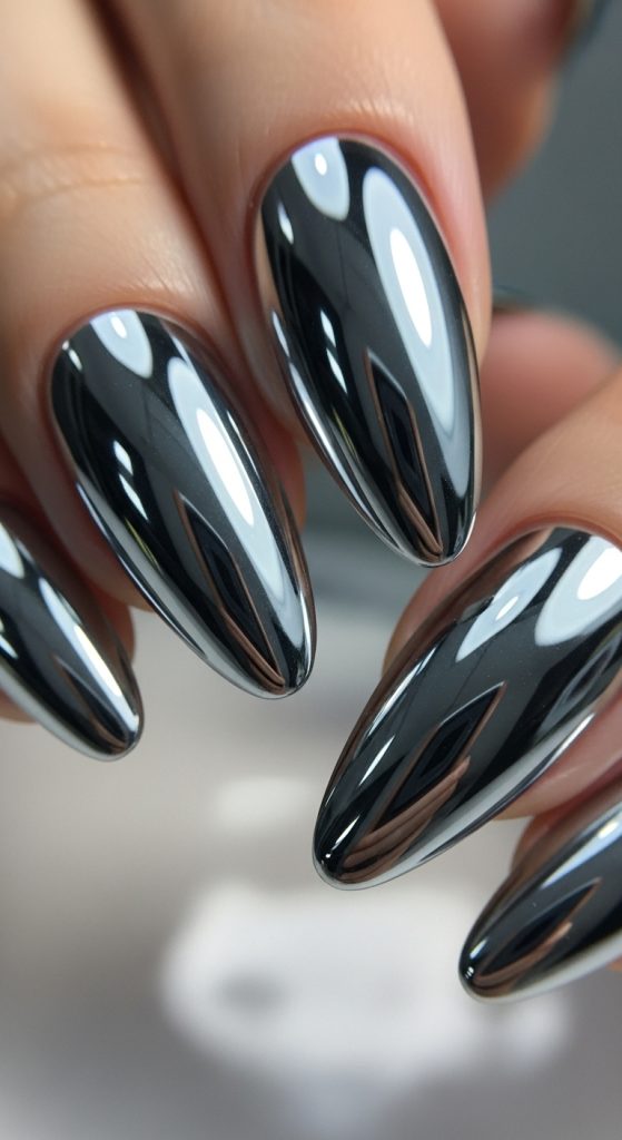 Chrome nails make a bold statement and give off a futuristic, mirror-like shine.