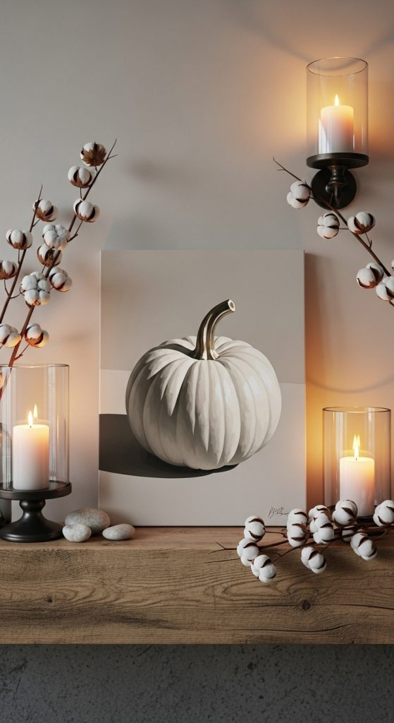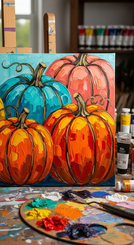 This idea is excellent for modern interiors or anyone who loves expressive art. Abstract pumpkin designs allow freedom and creativity, turning a simple seasonal concept into a unique artistic statement.