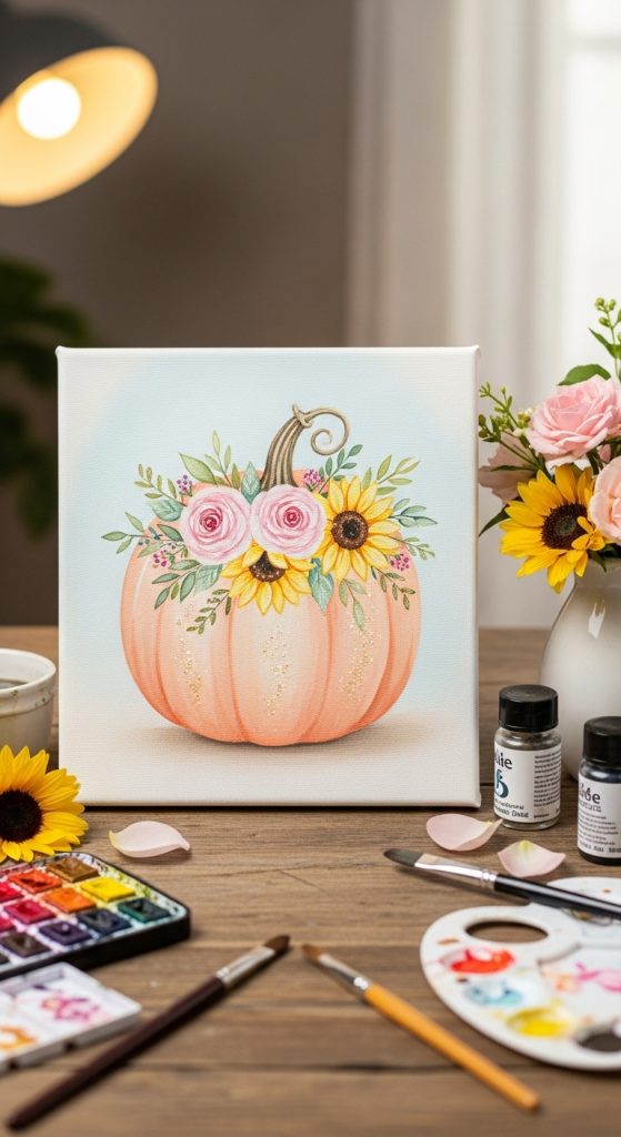 This idea works wonderfully for seasonal decor in bedrooms or living spaces. You can also experiment with watercolor-style blending for a softer effect. It is a versatile design that balances fall themes with floral beauty.