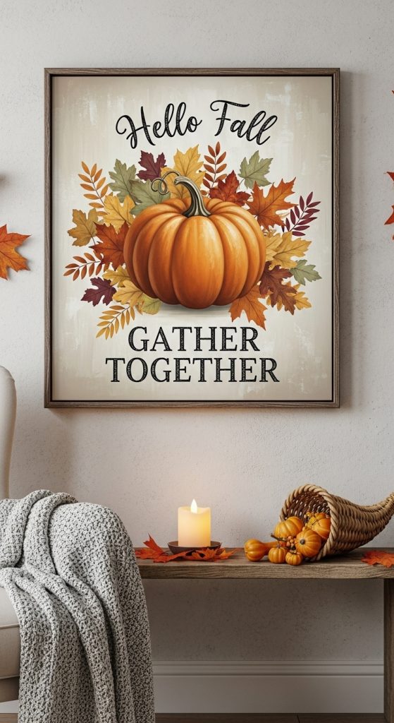 Use elegant calligraphy or stencil fonts for clean lettering. You can embellish the design with leaves, acorns, or small pumpkins around the text. This project makes a perfect handmade gift or decorative sign for your home.